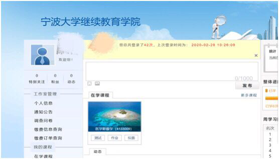 18级宁波大学成人高等学历教育第五学期开课了,为方便学员学习和解决工学矛盾,学校开发了基于互联网的继续教育网上学习平台,学员可以按照每学期的教学进程通过互联网在线学习相关课程内容。