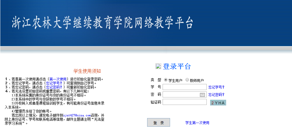 一、登录网址https://zjnljj.zafu.edu.cn/(与教学点管理入口相同)