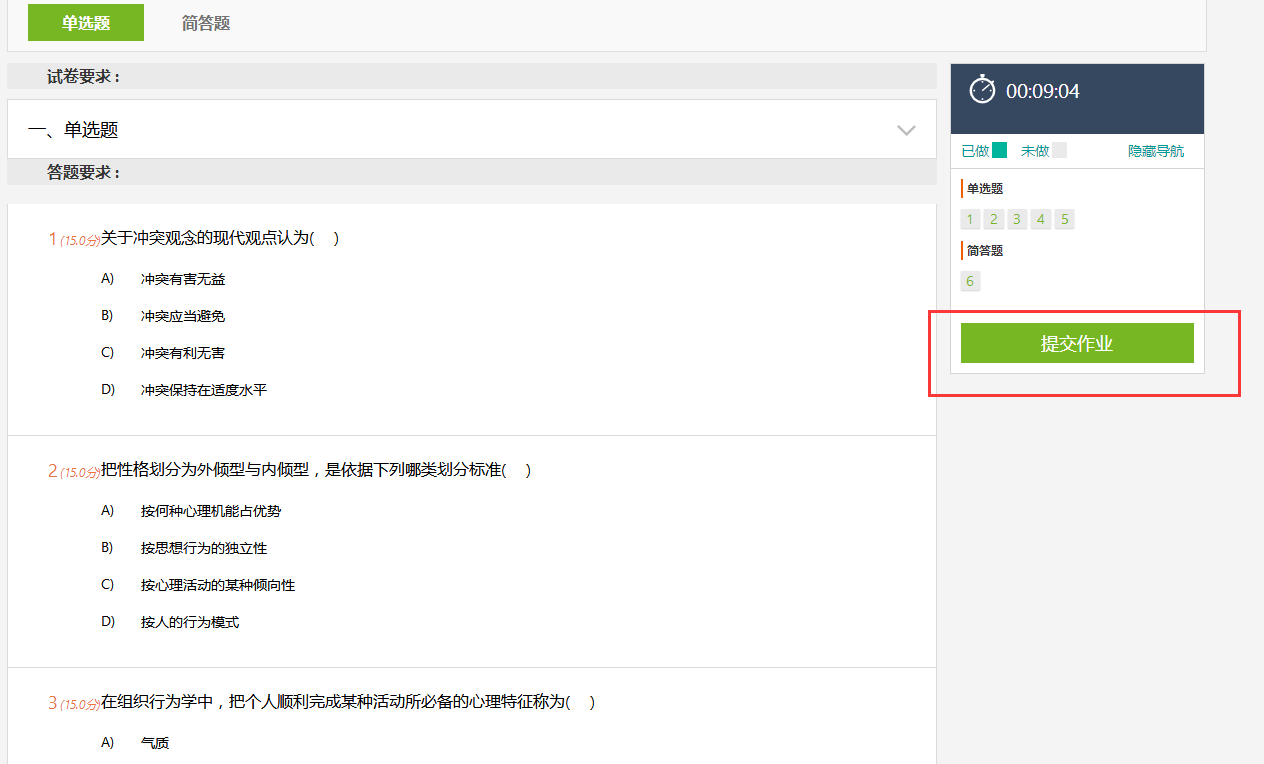 第三步:提交完毕后,客观题系统会自动判分,生成成绩;主观题等待老师批阅,点击查看就可以看到试卷每项得分情况。