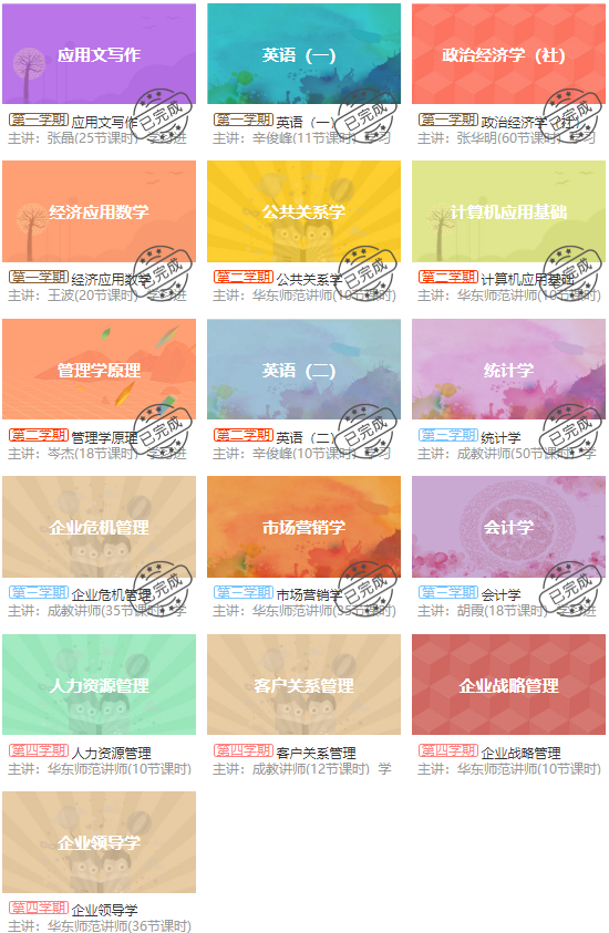 浙江工商大学成人教育台州育华教学点(第四学期)网上听课一览表