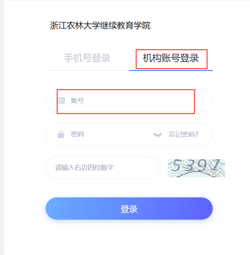 点击我——请先登录——选择其它方式登录——机构登录,输入单位、学号、密码后点击登录——完善信息,输入手机号、验证码,点击确认——重置密码,输入新密码、确认新密码、验证码,点击登录,即可完成登录。注意:机构名称:输入文字“浙江农林大学继续教育学院”或fid“99279”,输入学号和密码(初始密码为tzyh1234)。