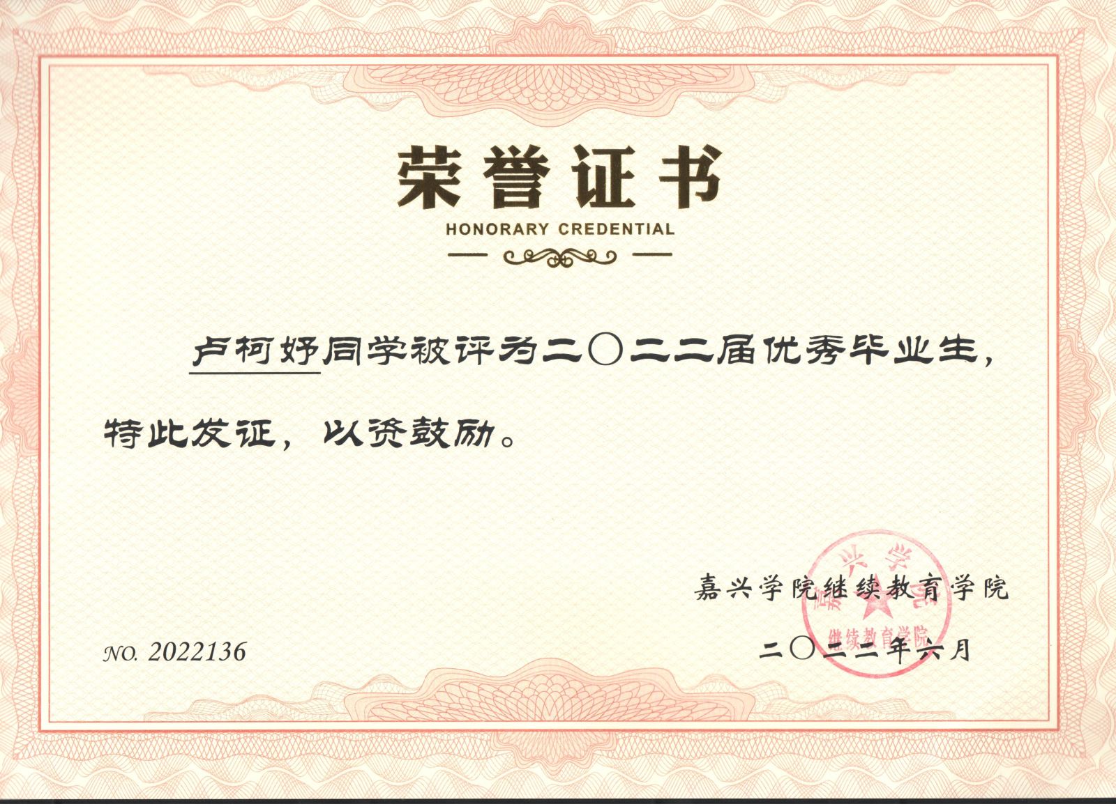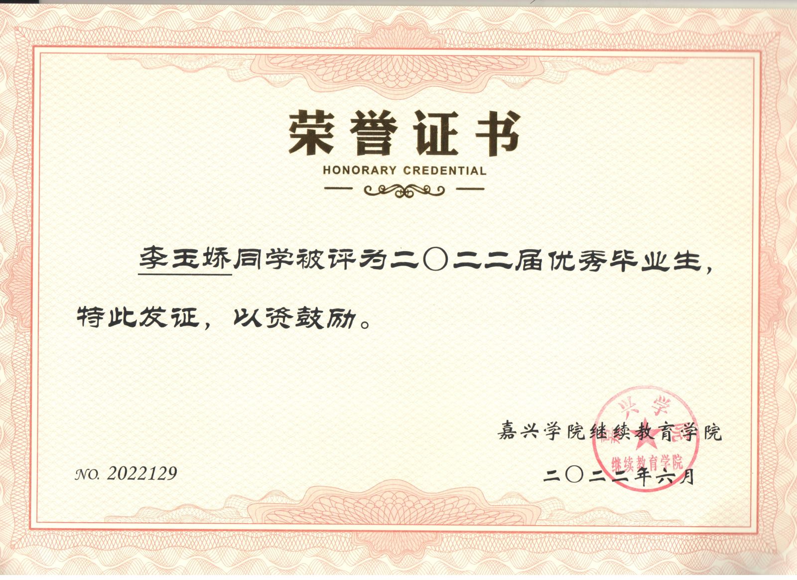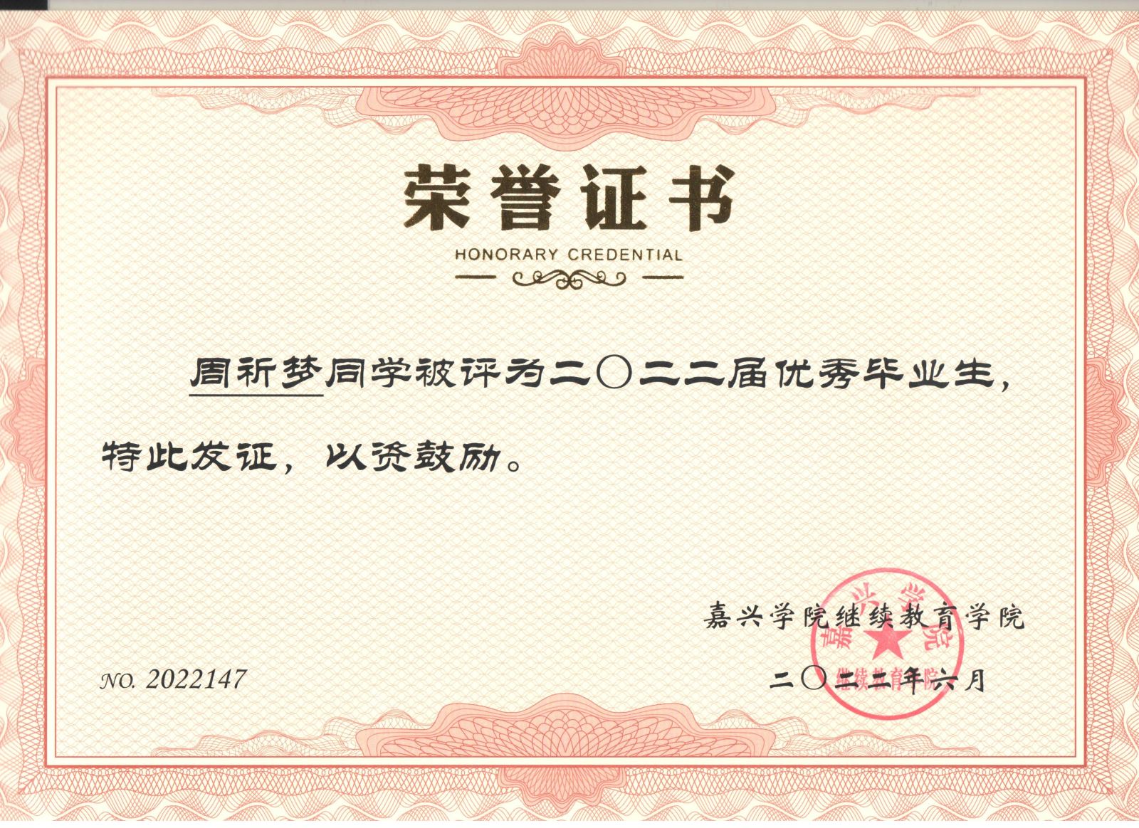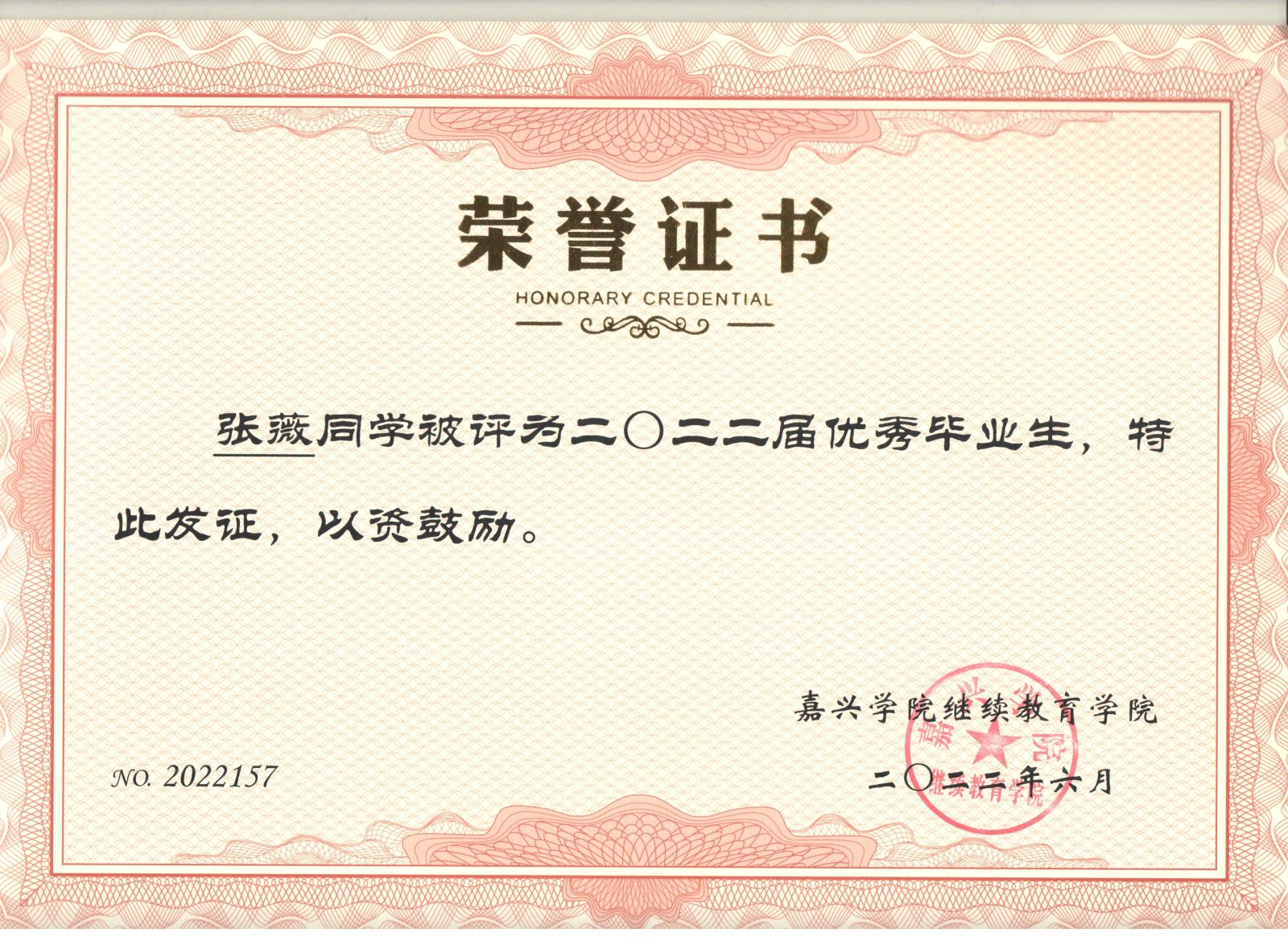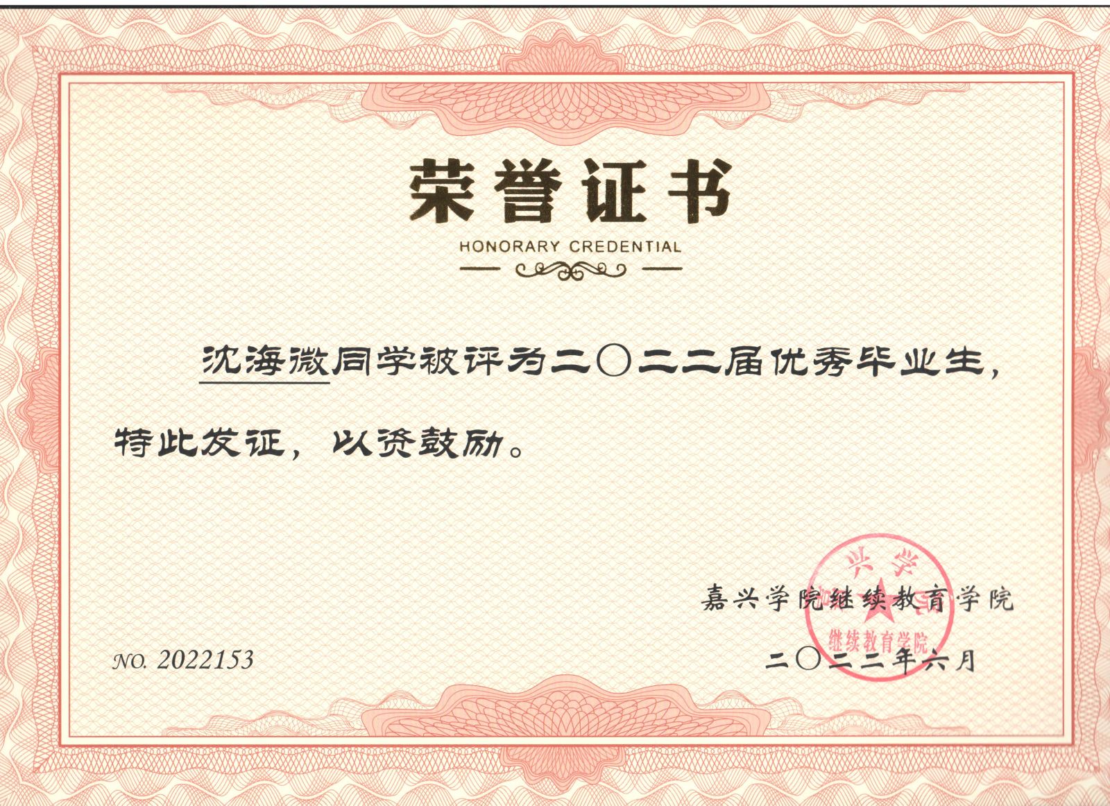 关于沈海微等36位学员被评为嘉兴学院2022届优秀毕业生的表彰决定