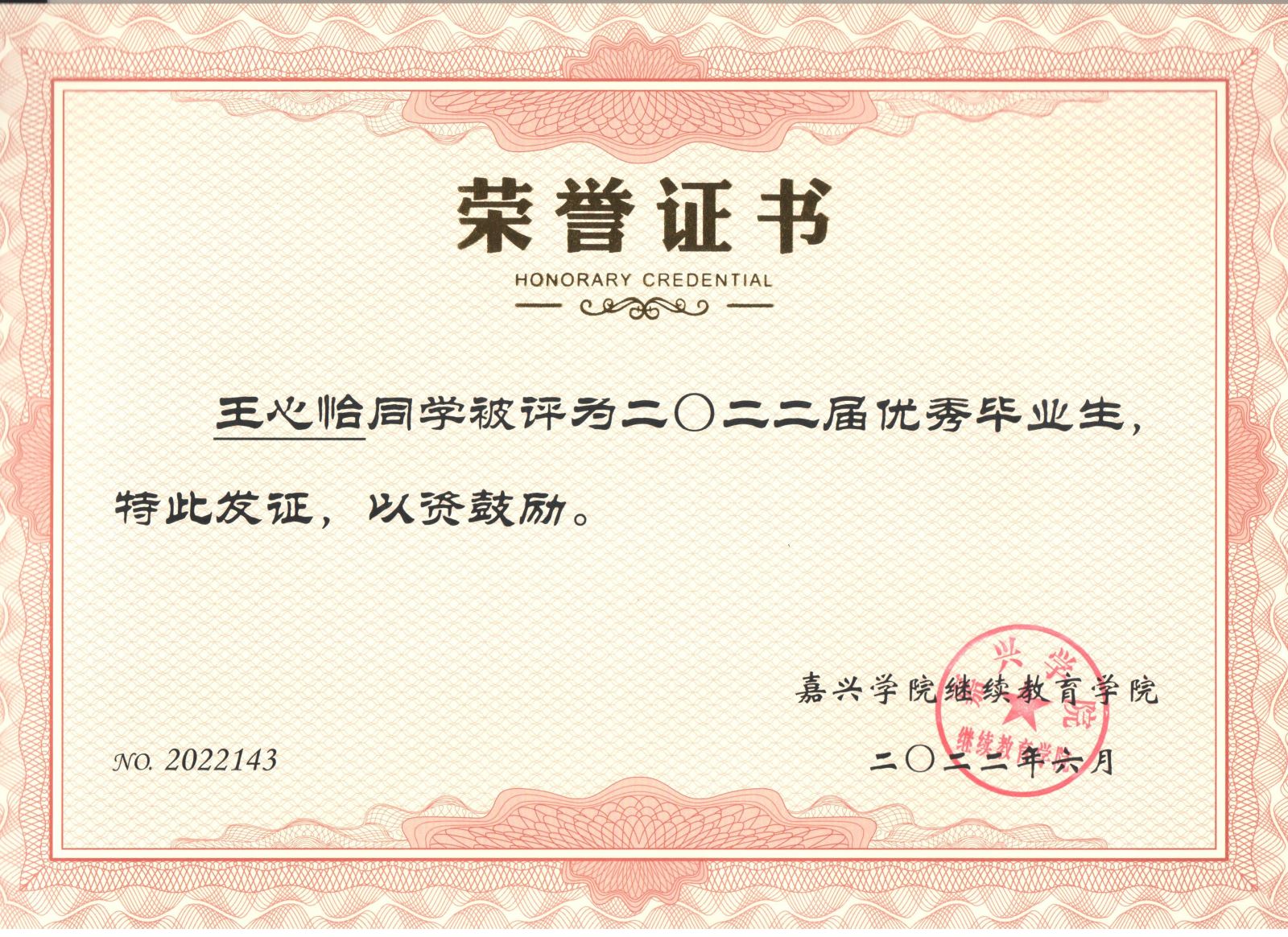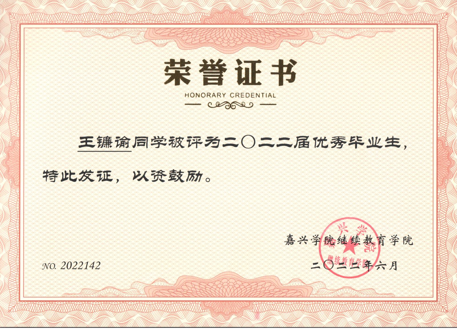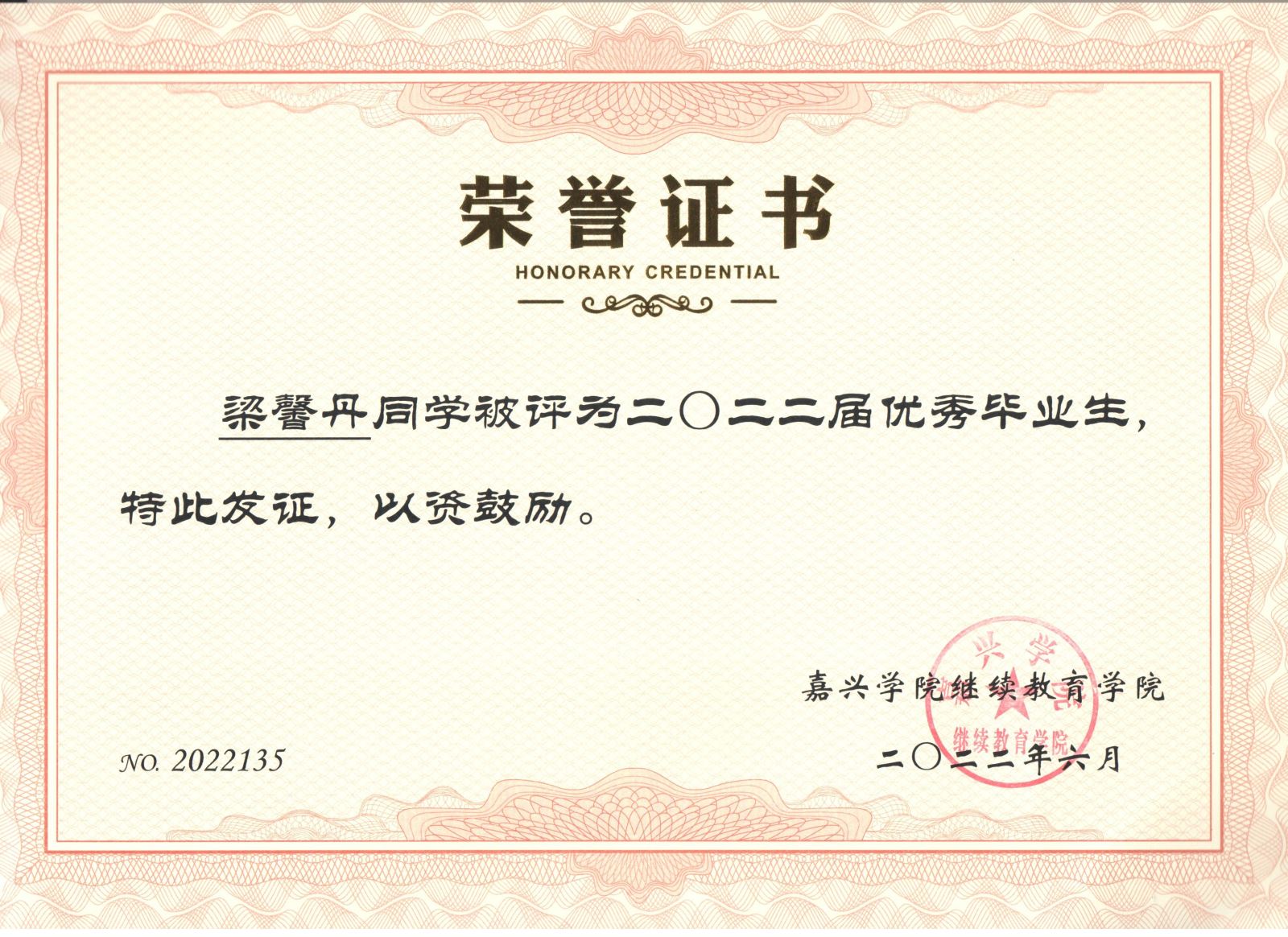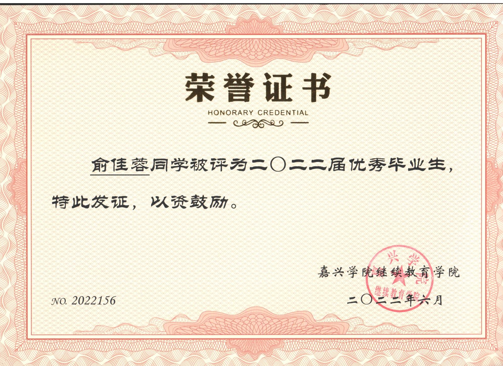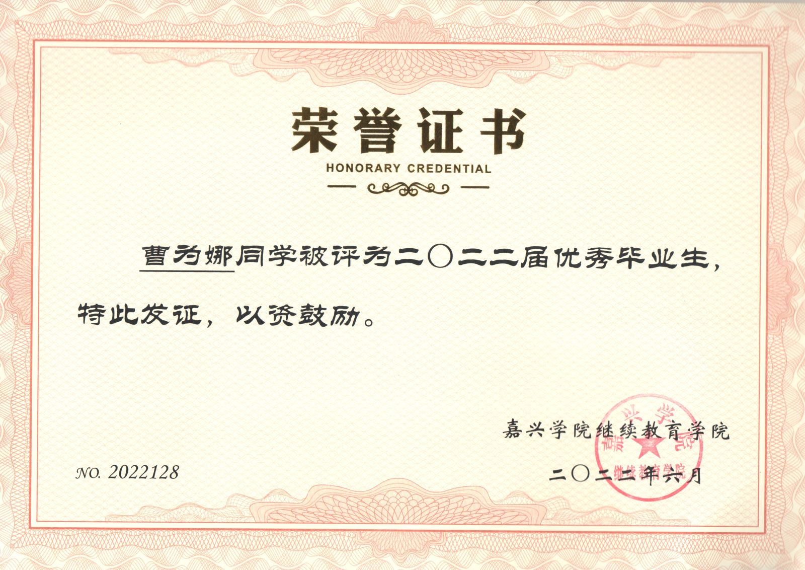 关于沈海微等36位学员被评为嘉兴学院2022届优秀毕业生的表彰决定