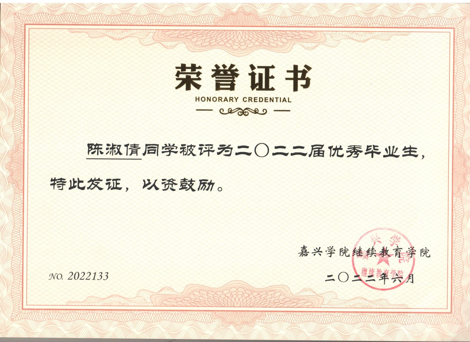 根据嘉兴学院成人教育学院“优秀毕业生”的评选方法:经过对学生的平时表现,学生成绩的考核,学校审核等程序,共评选产生沈海微等36名学生为嘉兴学院2022届学历继续教育“优秀毕业生”称号。现予表彰公示,具体名单见附后。