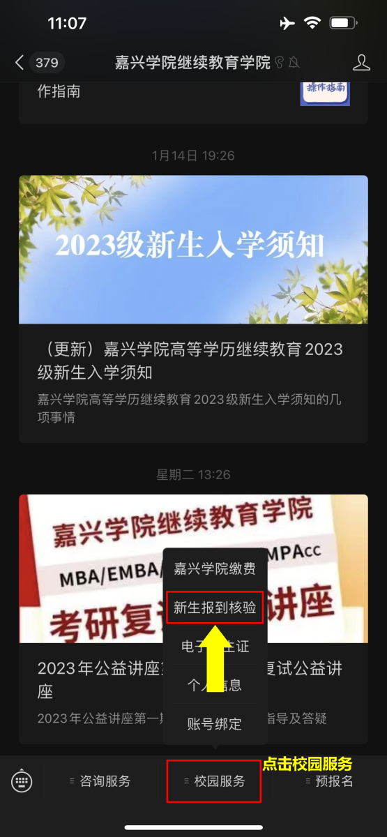 10. 收件箱:接收和查看平台发送的各类通知(绑定嘉兴学院继续教育学院微信公众号后,手机同步接收到通知提醒)。