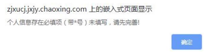 2.完成个人必填信息(个人信息无需补充者,请忽略。)个人入学信息不全者进入填写页面时,平台将提示“个人信息存在必填项(带*号)未填写,请先完善!”。收到本条提示后,请切换到“个人信息”菜单,补充完善个人信息页面上带*号的必填项,完成后方能进入填写《毕业生登记表》页面。
