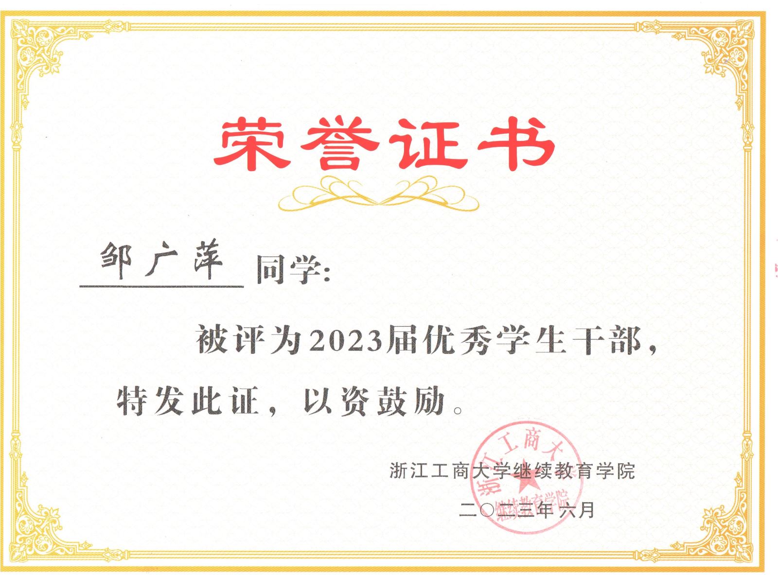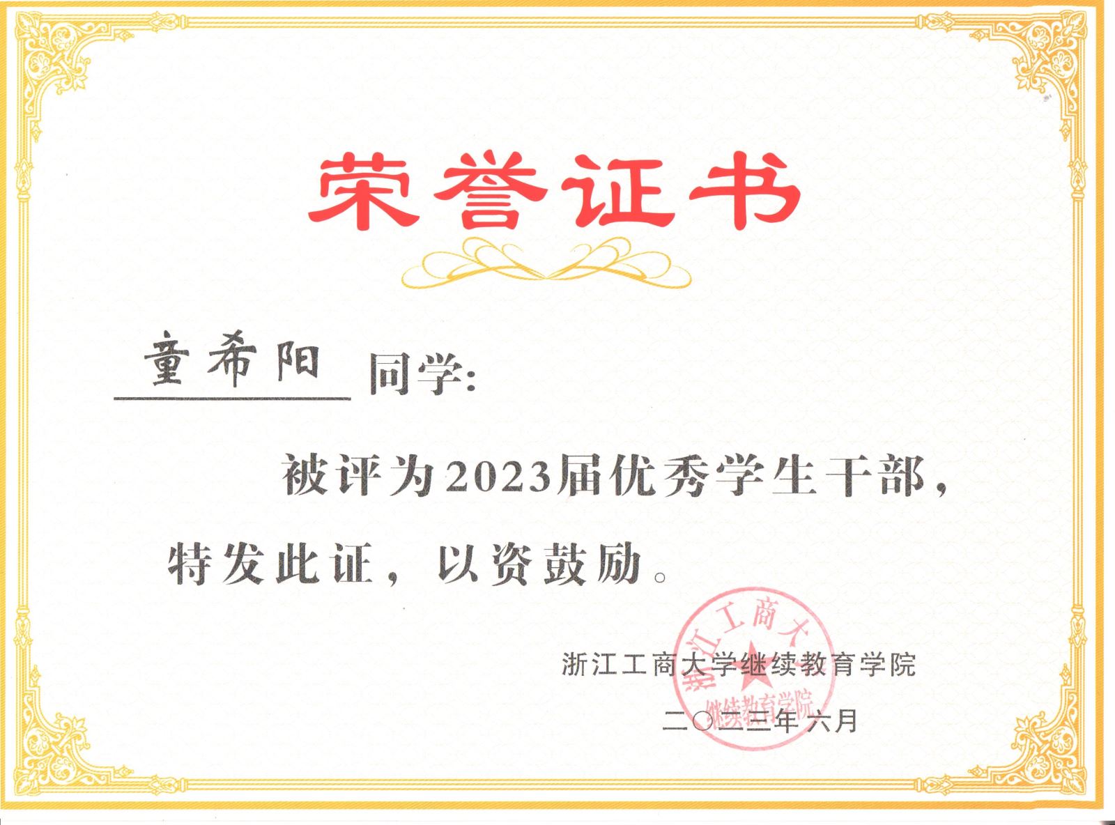 根据《浙江工商大学高等学历继续教育优秀毕业生、优秀学生干部评选办法》,经各班级推荐,教学点评选,学历教育部审核,学院拟批准授予张丽丽等15位学生为2023届“优秀毕业生”荣誉称号;授予童希阳等4位学生为2023届“优秀学生干部”荣誉称号。现公示名单如下: