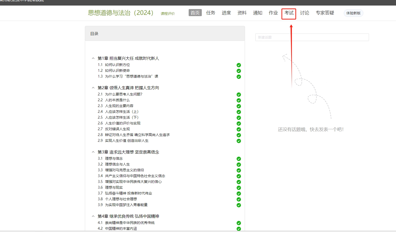二、机考功能所在位置:点击课程进入学习→考试,如下图: