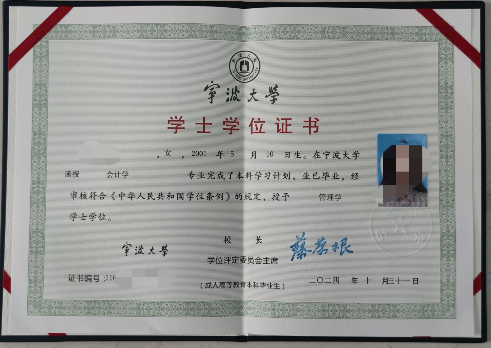 学士学位证书外壳样本