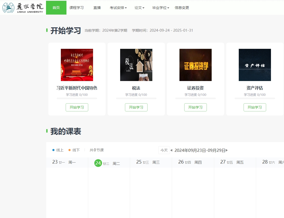 丽水学院成人高等学历教育2023级第四学期在线学习一览表