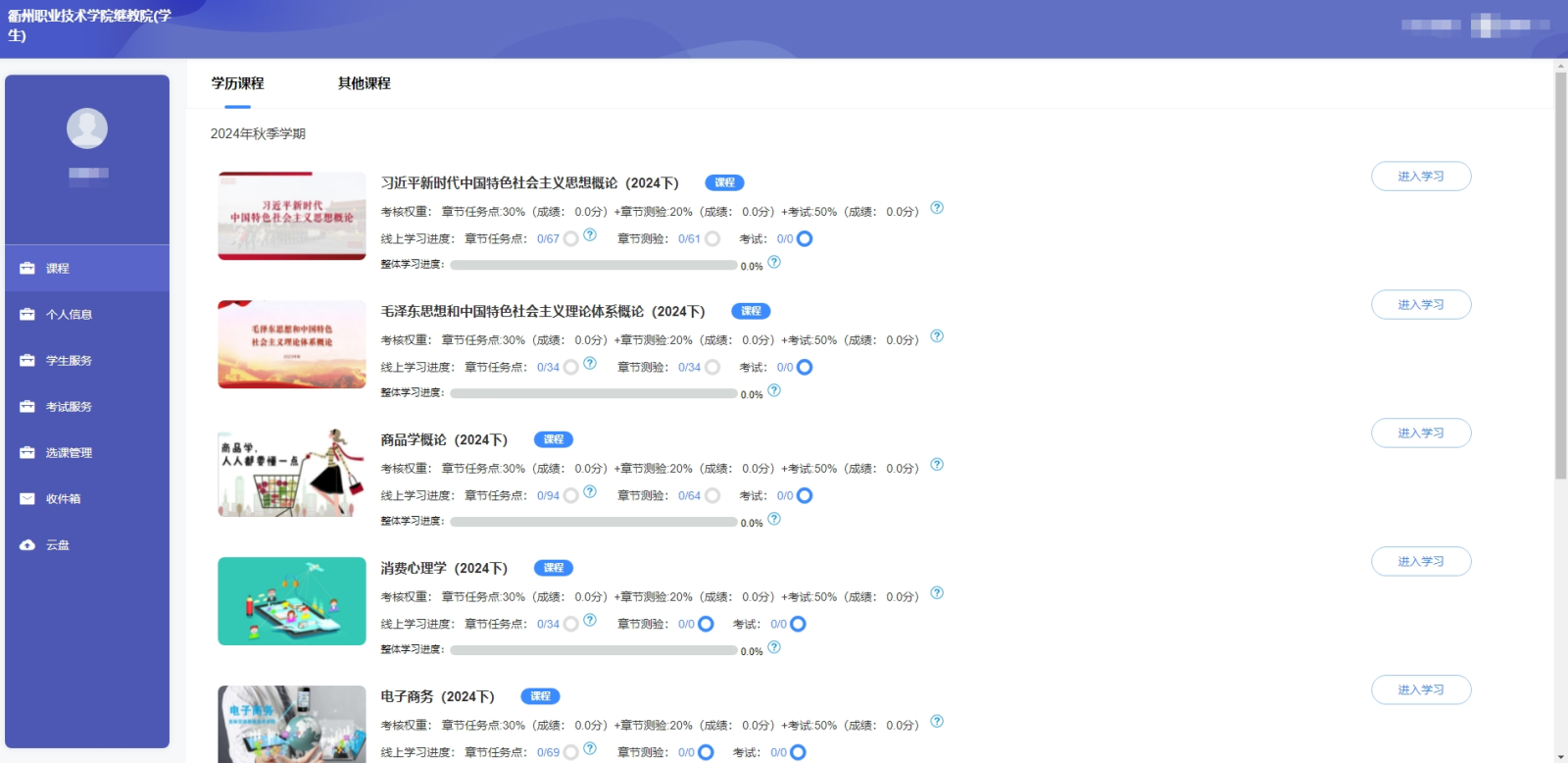 衢州职业技术学院成人教育2024级(第二学期)在线学习一览表