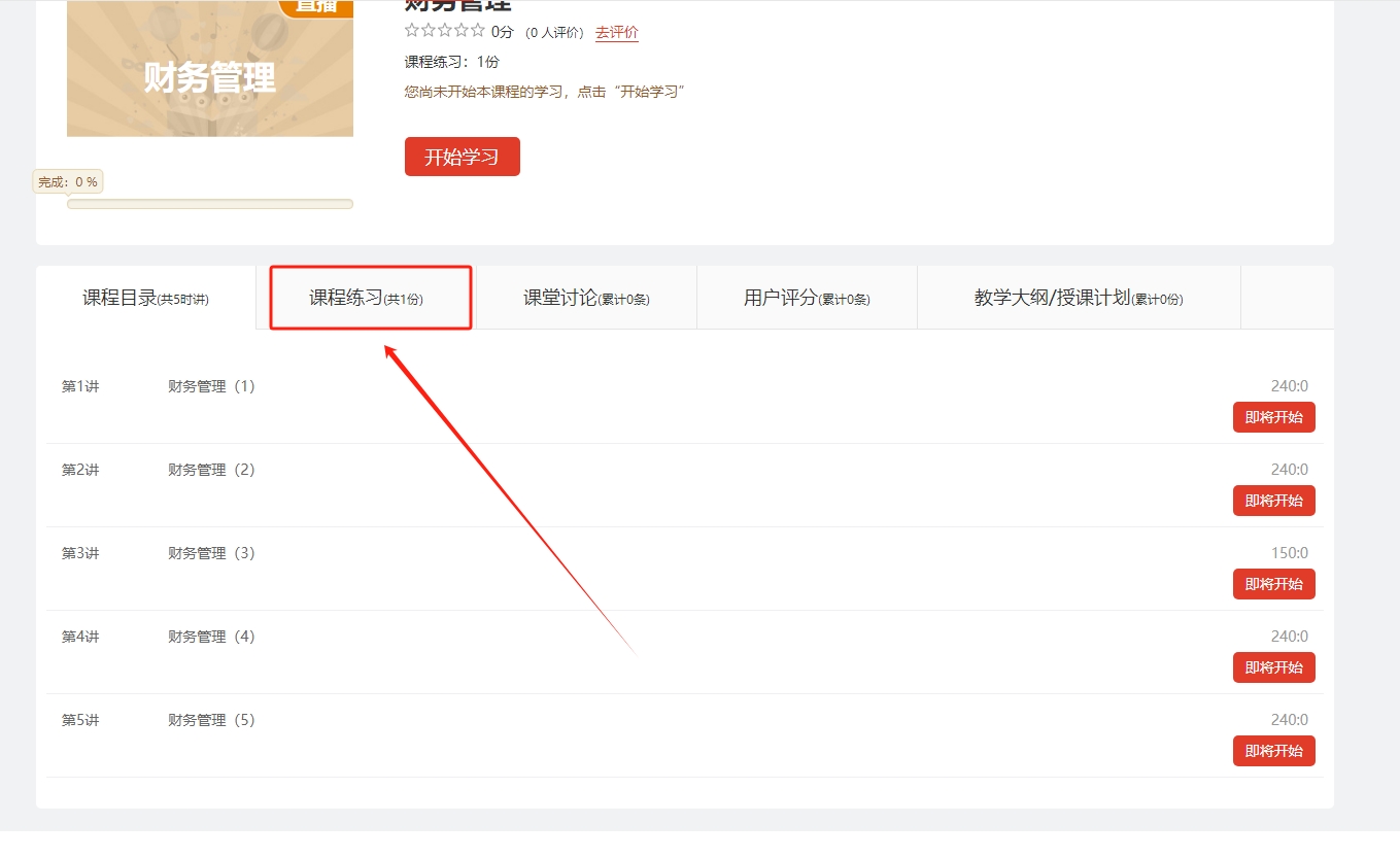 温馨提示:请务必按时完成直播课程,并完成课程练习,见下图:
