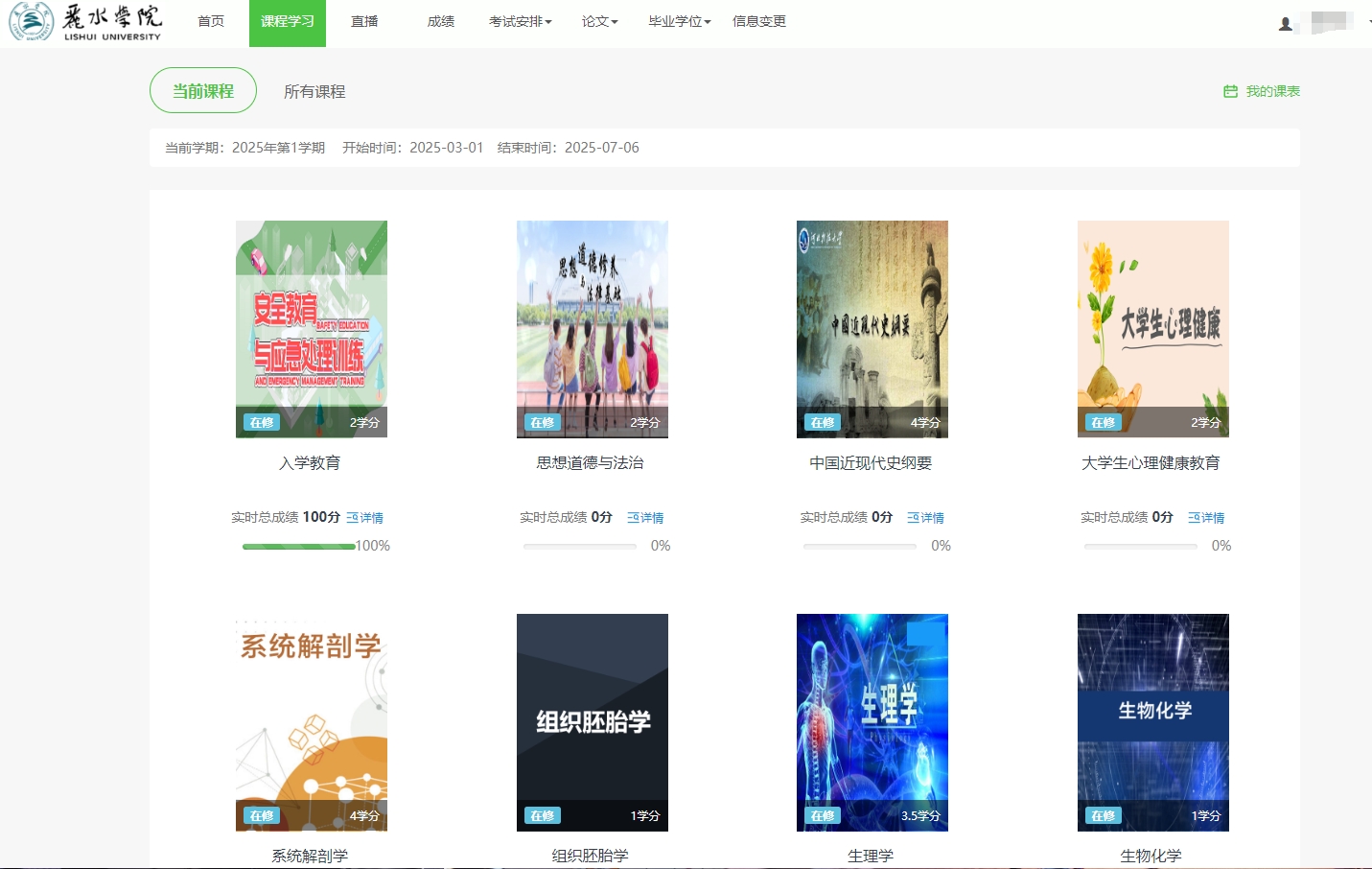 丽水学院成人高等学历教育2025级第一学期在线学习一览表