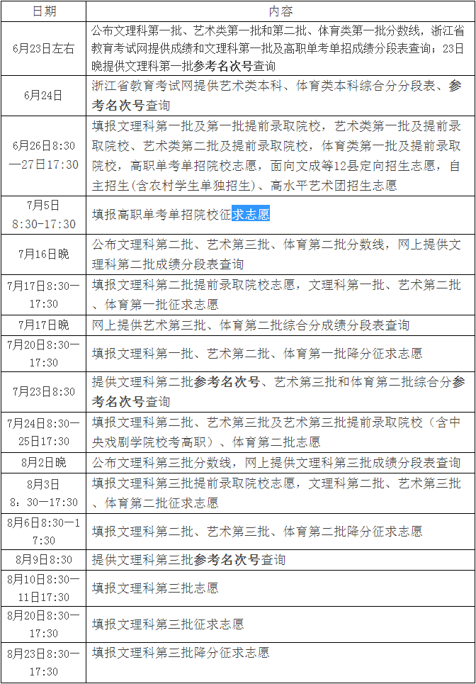 6月26-27日,考生即可上网填报文理科第一批、艺术第一、二批,体育第一批、高职单考单招以及面向文成等12县定向招生志愿,自主招生(含农村学生单独招生)、高水平艺术团招生志愿同时填报。其余志愿后续分批填报。