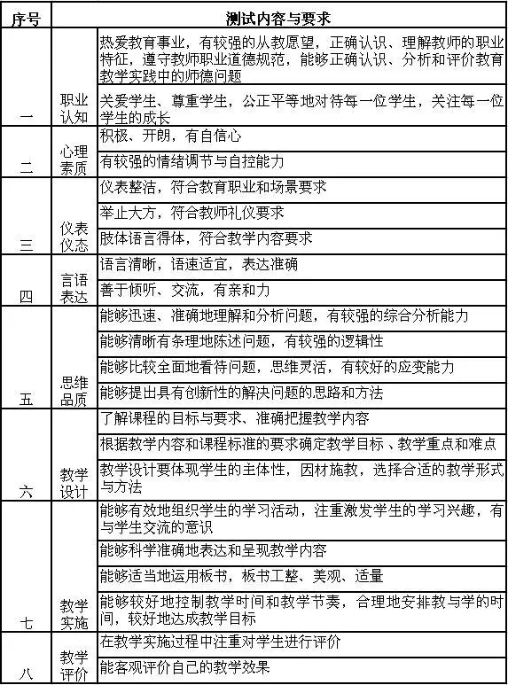 通过了教师资格笔试的同学们是否觉得胜利在望?千万别掉以轻心,想要拿到教师资格证还要通过面试,而面试是最考验教师综合素质的环节。2015年度下半年国家教师资格面试时间调整后,将在本周末(1月9-10日)开考。浙江省共有3万余考生参加,全省共设11个考区、22个面试考点。今天,浙考微君为大家摘选了教师资格面试的部分考试大纲及注意事项,临考前快来读一读吧。