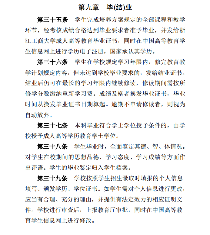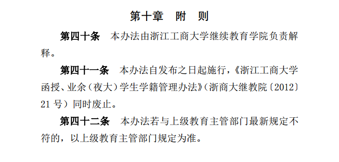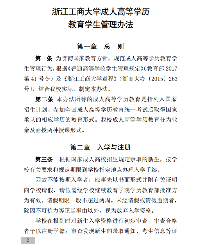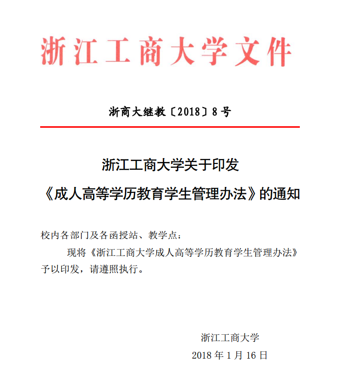 浙江工商大学关于印发《成人高等学历教育学生管理办法》的通知