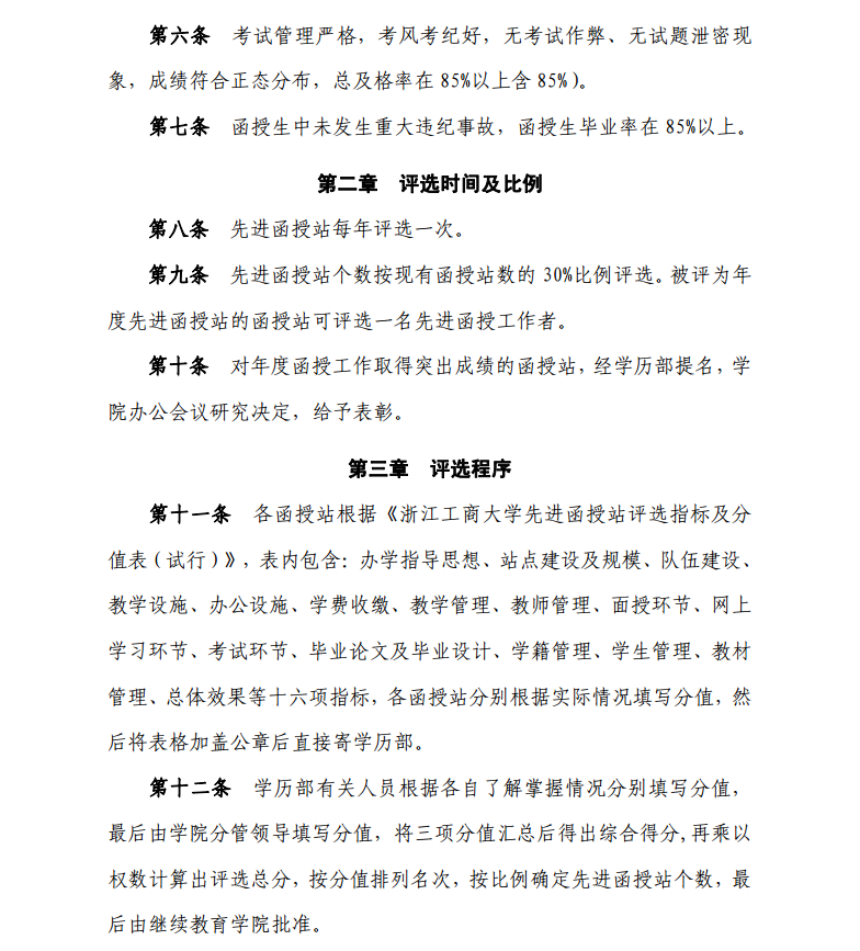 浙江工商大学继续教育学院 先进函授工作者评选办法