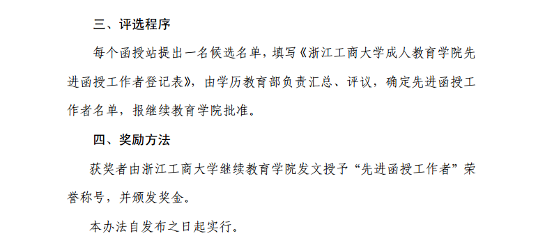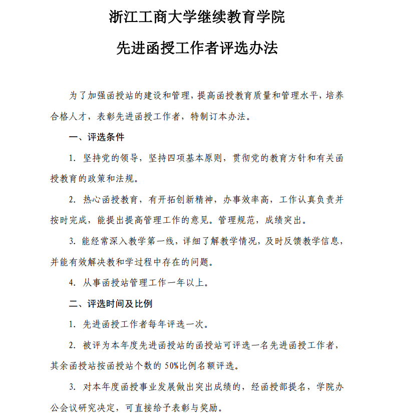浙江工商大学继续教育学院 先进函授工作者评选办法