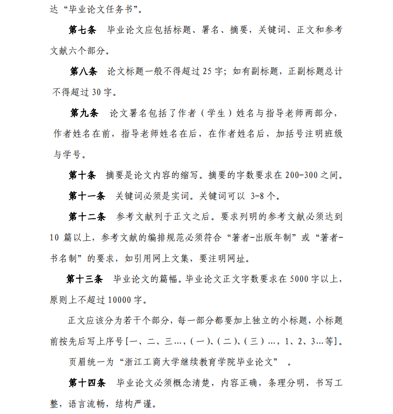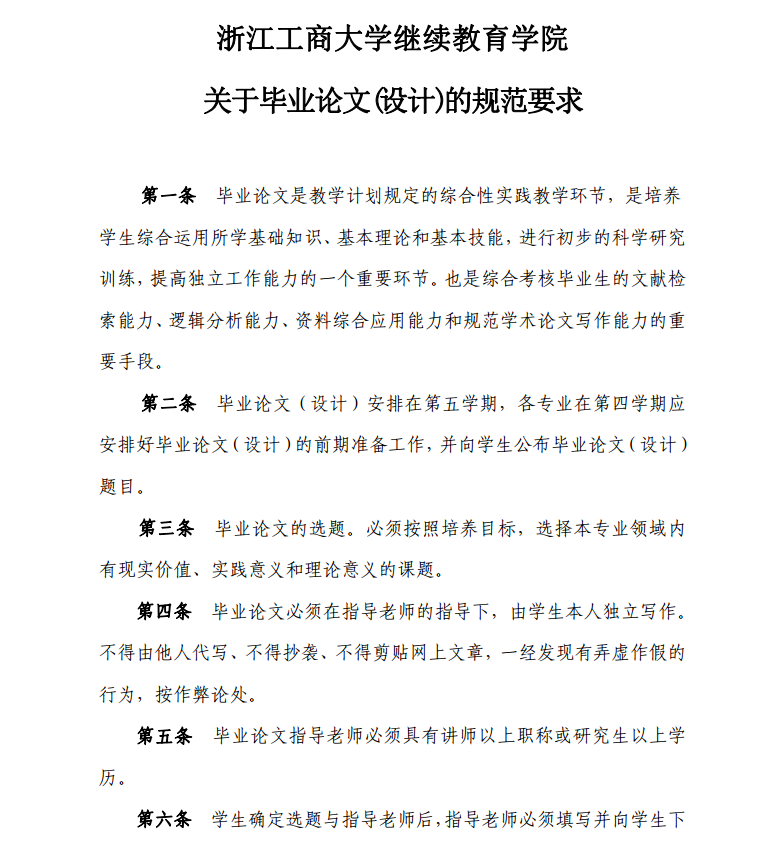 浙江工商大学继续教育学院 关于毕业论文(设计)的规范要求