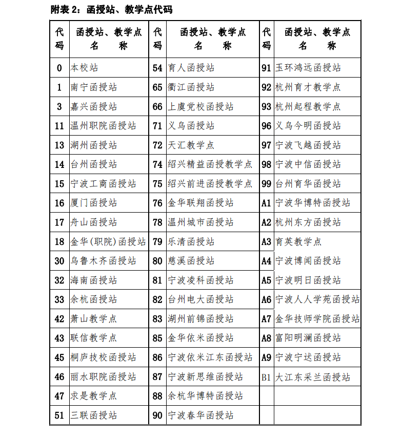 浙江工商大学继续教育学院 业余、函授学生学号编制