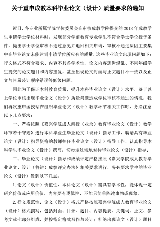 关于重申成教本科毕业论文(设计)质量要求的通知