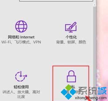 2、在Win10系统设置界面中,我们点击设置界面中的“隐私 ”选项,打开Win10系统中的隐私设置选项;