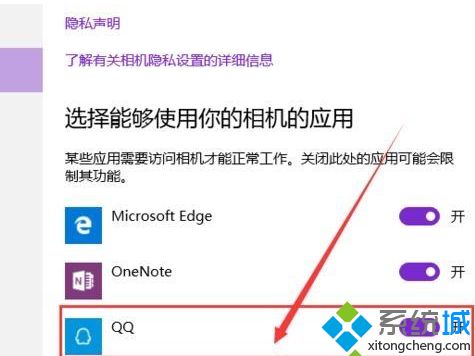 4、进入相机应用界面之后,我们可以看到页面中出现了允许应用使用我的相机选项,那么我们直接点击“允许 ”按钮,将该开关按钮关闭,即不允许应用使用相机,达到了禁用相机的目的;