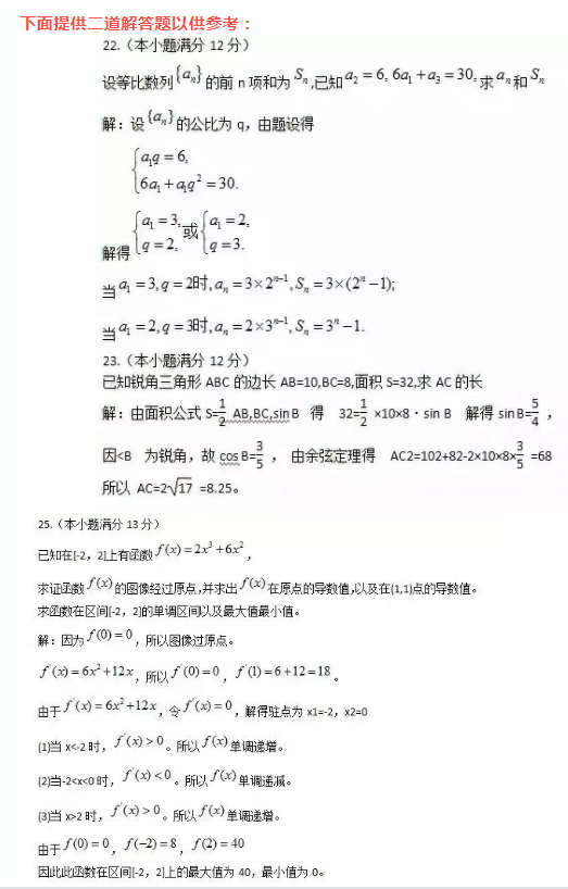 2009年成考填空题答案:(18) 1 (19) (20) 9.2 (21)