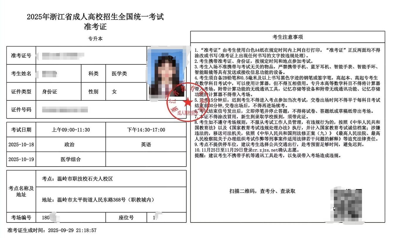 【下图为25年准考证照片,仅供参考】