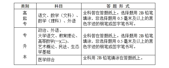 浙江成人高考(专科起点本科)入学考试科目