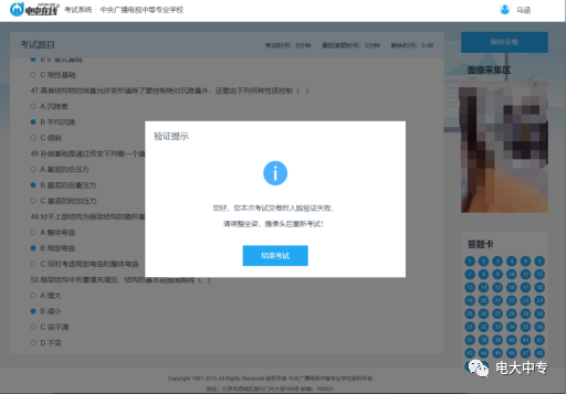 5.请确保考试环境良好、光线充足,不影响摄像头采集图像,全程本人考试,如提示人脸验证失败,本次考试作废。