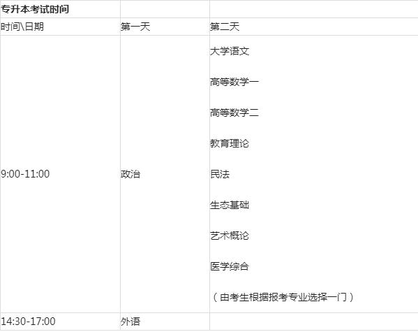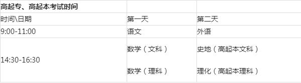 2.高中起点专科、本科的统考科目每门的时间为120分钟,专科起点本科每门考试统考时间为150分钟;