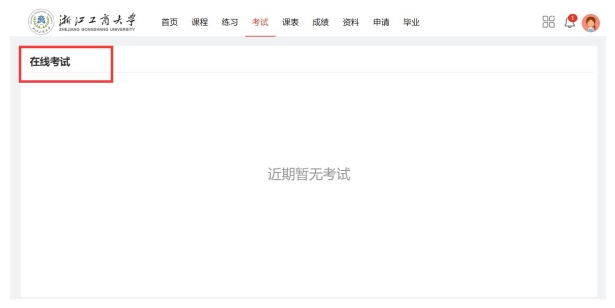 3.“在线考试”链接:点击 导航栏【考试】,找到【在线考试】这门 课程,会对应显示考试开放时间。