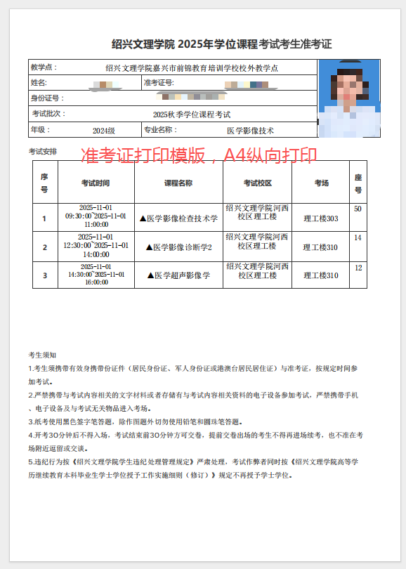 绍兴文理学院高等学历教育24级(第四学期)学位课程考试即将开始,现将本次考试有关要求通知如下: